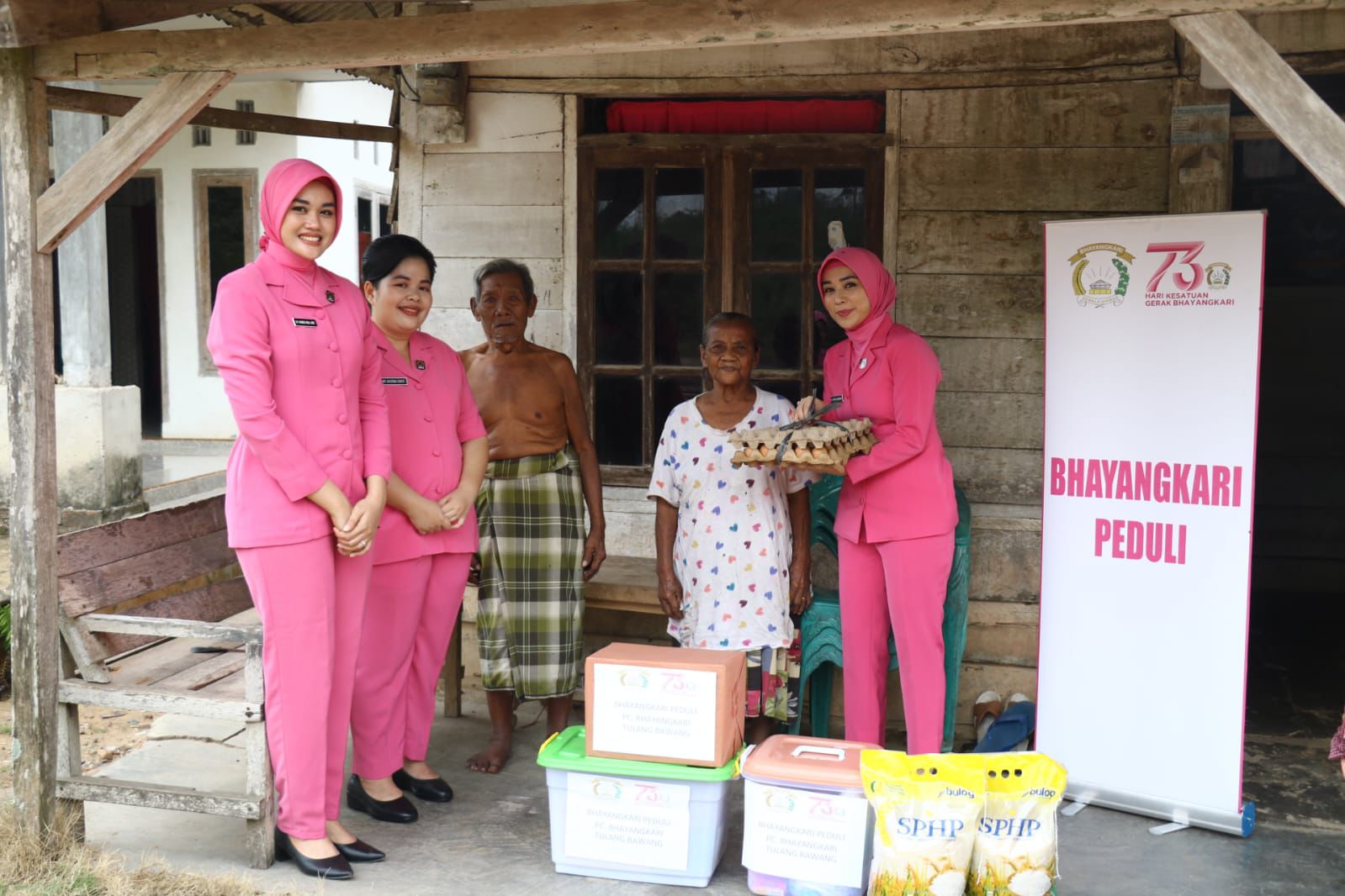 Tulang Bawang,sergap88.com–Dalam rangka memperingati Hari Kesatuan Gerak Bhayangkari (HKGB) ke-73, Bhayangkari Cabang Tulang Bawang Daerah Lampung menggelar kegiatan Bakti Sosial dengan membagikan paket sembako kepada warga masyarakat yang membutuhkan, khususnya di wilayah hukum Polres Tulang Bawang.