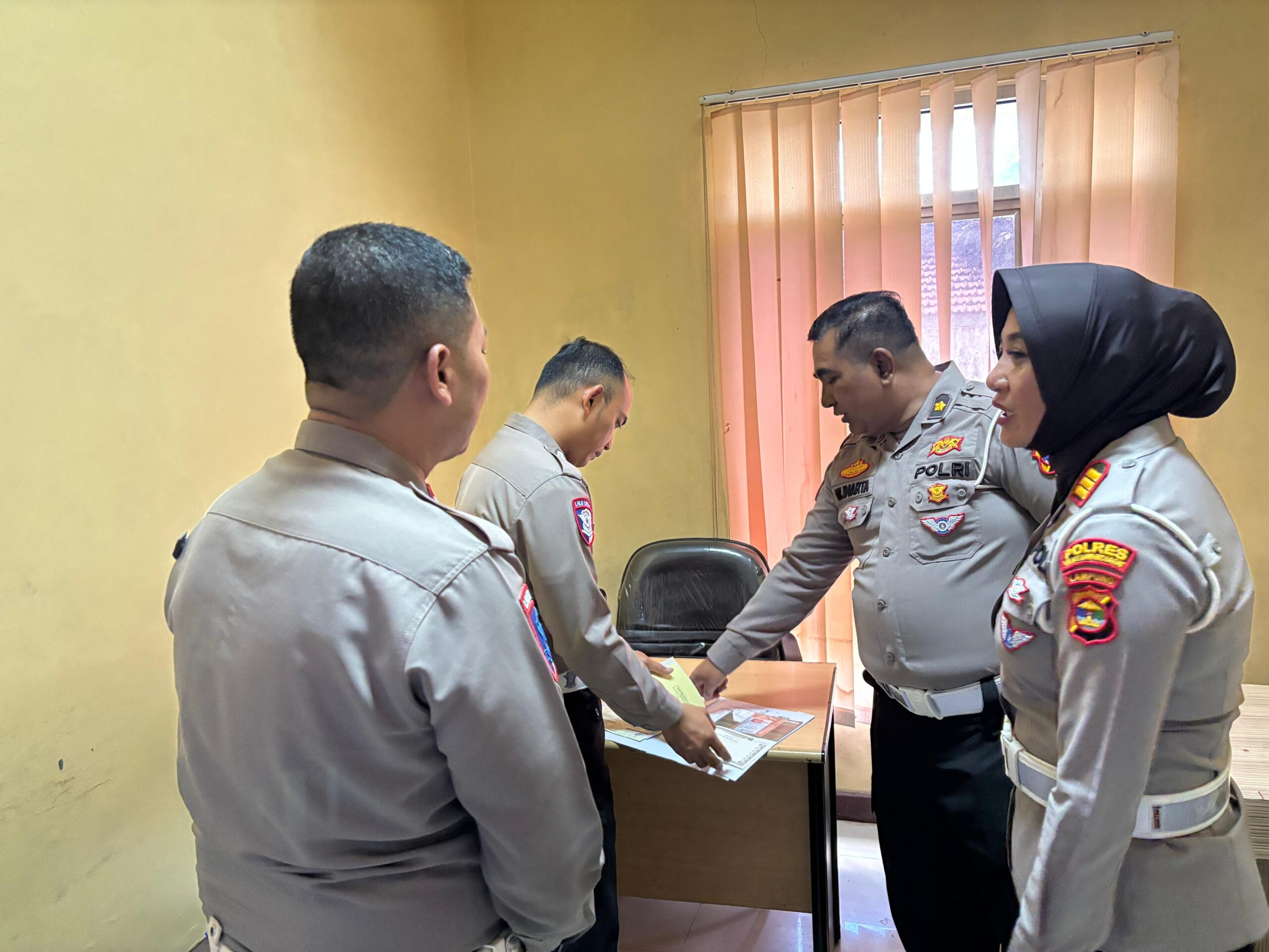 Menerima Langsung Tim Asistensi dengan di dampingi Kanit Regident Ipda Arief Teguh Susanto, S. K. M., S. Psi beserta Personil Sat lantas Polres Tubaba