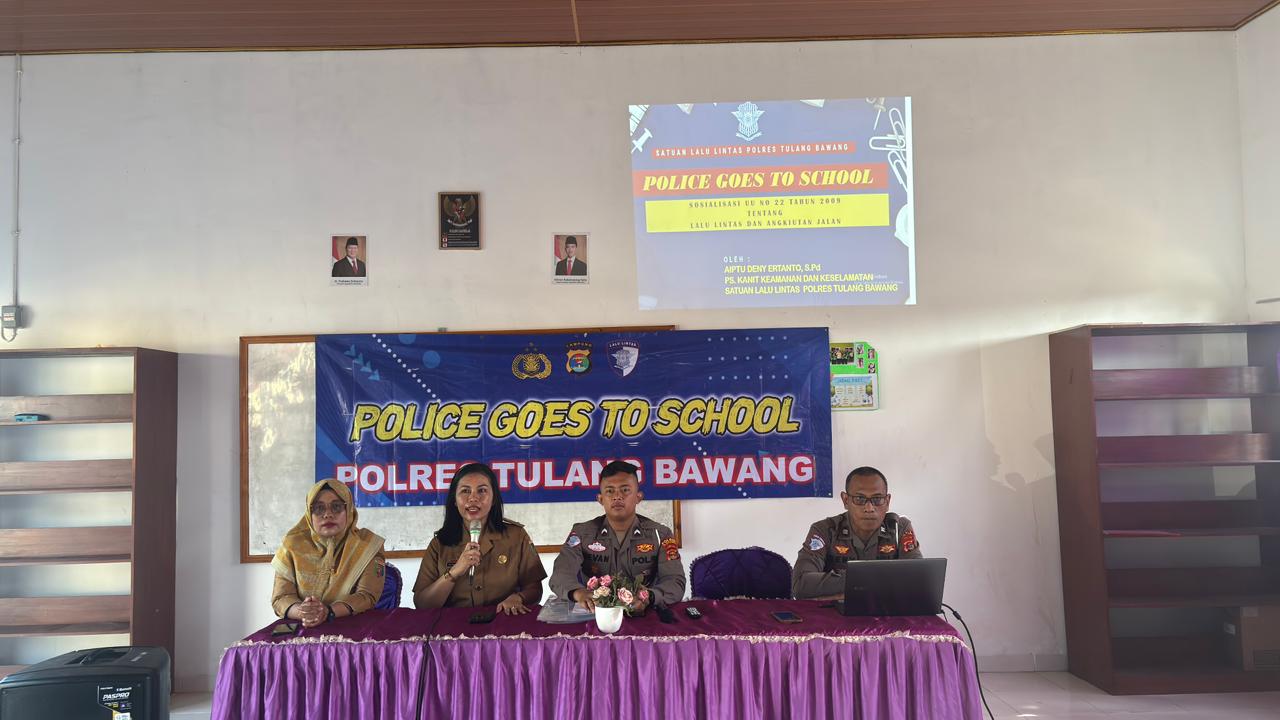 Tulang Bawang,sergap88.com–Senin, (06/10/2025) Satuan Lalu Lintas (Satlantas) Polres Tulang Bawang melalui Unit Keamanan dan Keselamatan (Kamsel) melaksanakan kegiatan “Polisi Goes to School” di SMKN 1 Banjar Margo. Kegiatan yang berlangsung sejak pukul 08.00 WIB ini diikuti oleh 81 siswa serta 8 guru pendamping.