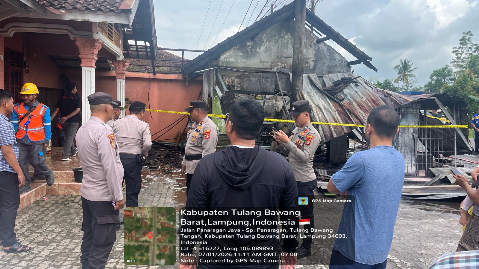 Tulang Bawang Barat,sergap88.com–Respons cepat ditunjukkan oleh personel Pamapta Polres Tubaba,Polda Lampung bersama KA SPKT III Polsek Tulang Bawang Tengah saat menerima laporan adanya kebakaran di Warung Sembako milik Sukri bertempat di Kelurahan Panaragan Jaya RK/RT 005/003 Kecamatan Tulang Bawang Tengah Kabupaten Tulang Bawang Barat. Rabu (07/01/2026).