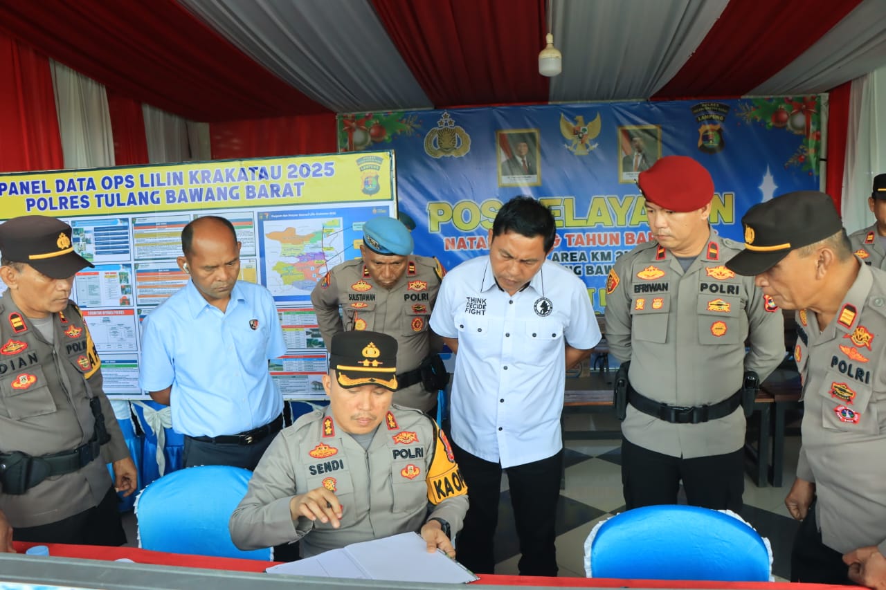 Tulang Bawang Barat,sergap88.com–Guna memastikan kesiapan pengamanan Ops lilin Krakatau 2025, Kapolres tubaba Polda Lampung AKBP Sendi Antoni.S.I.K, M.I.K, bersama Ibu Ketua Bhayangkari Cabang Tubaba Ny. Nina Sendi Antoni, didampingi para Pejabat Utama (PJU ) Polres Tubaba melakukan kunjungan ke Pos Yan Rest Area 215 Trans Tol Trans Sumatera Way Kenanga, Rabu (24/12/25) Siang.