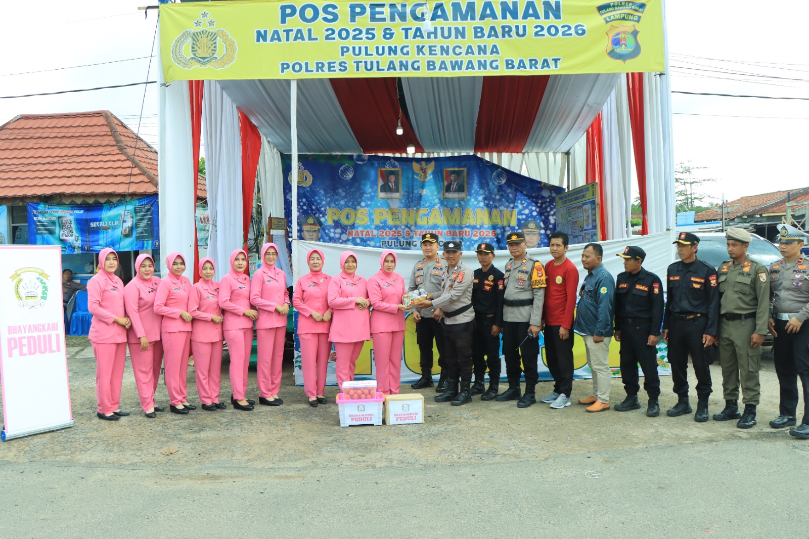 Tulang Bawang Barat,sergap88.com–Sebagai wujud kepedulian dan dukungan terhadap seluruh personel gabungan yang terlibat dalam Ops Lilin Krakatau 2025, Kapolres Tubaba, Polda Lampung AKBP Sendi Antoni.S.I.K, M.I.K, bersama Ibu Ketua Bhayangkari Cabang Tubaba Ny. Nina Sendi Antoni, didampingi para PJU dan pengurus Bhayangkari melakukan kunjungan ke Pospam Islamic center dan Pospam Pulung Kencana, Kamis (25/12/2025) Pagi