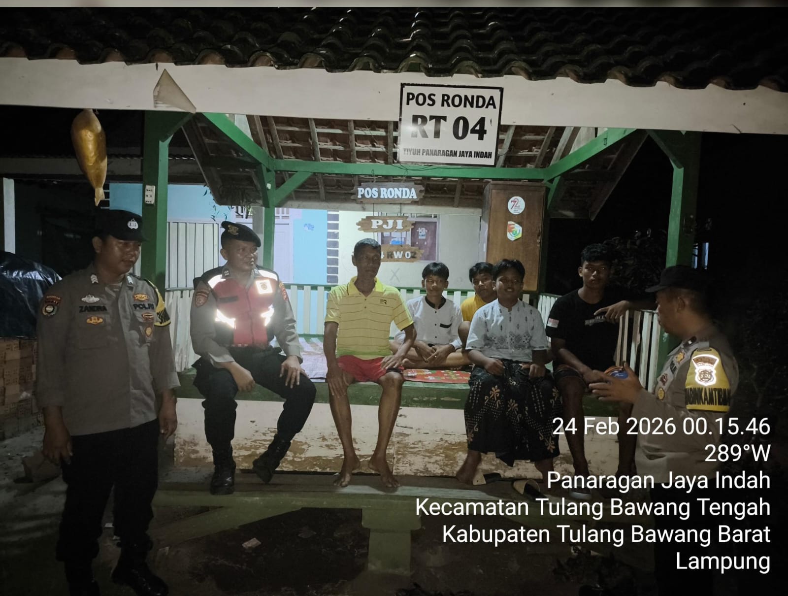 Tulang Bawang Barat,sergap88.com–Dalam upaya menjaga keamanan dan ketertiban masyarakat (kamtibmas), Personil Polsek Tulang Bawang Tengah, Polres Tubaba, Polda Lampung melaksanakan patroli siskamling di Bulan Ramadhan pada jam Rawan dini hari, Patroli tersebut dilakukan di Tiyuh Panaragan Jaya Indah Kec. Tulang Bawang Tengah Kab. Tulang Bawang Barat, Selasa (24/02/2026) Dini hari