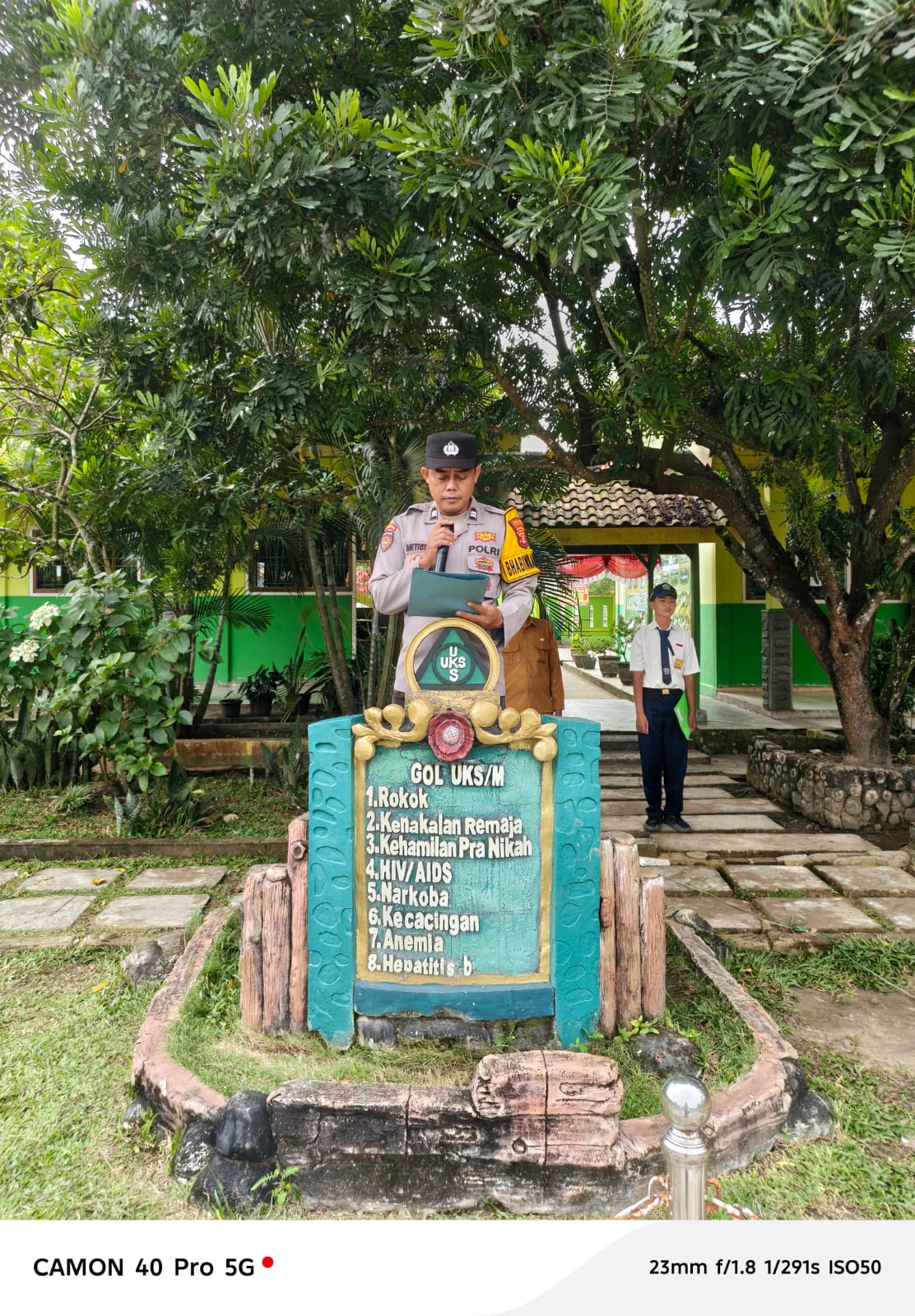 Bertindak sebagai pembina upacara sekaligus narasumber adalah AIPTU MUTRISNO, selaku Bhabinkamtibmas Polsek Banjar Agung. Dalam amanatnya, ia memberikan sosialisasi dan edukasi penting terkait kenakalan remaja, bahaya narkoba, dampak negatif media sosial bagi anak usia dini, serta pencegahan bullying di lingkungan sekolah.