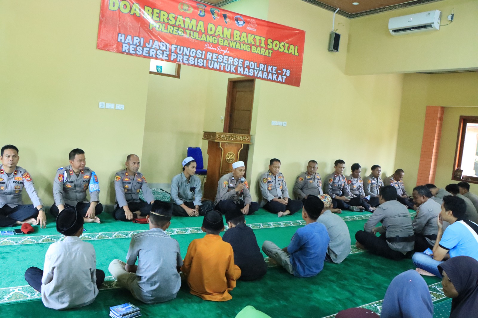 Tulang Bawang Barat,sergap88.com–Personil Polres Tulang Bawang Barat, Polda Lampung, menggelar kegiatan dalam rangka Doa Bersama dan Bakti Sosial dalam Rangka Hari Jadi Reserse ke-78, Kegiatan doa bersama dan Bakti Sosial di laksanakan di Masjid Al Ikhlas Mapolres Tubaba, Doa bersama ini diikuti oleh Puluhan personil mulai dari Pejabat utama Polres, perwira staf dan personil Polres Tubaba, yang tampak khusyuk dalam mengikuti rangkaian kegiatan tersebut, Kamis (11/12/2025) Pagi