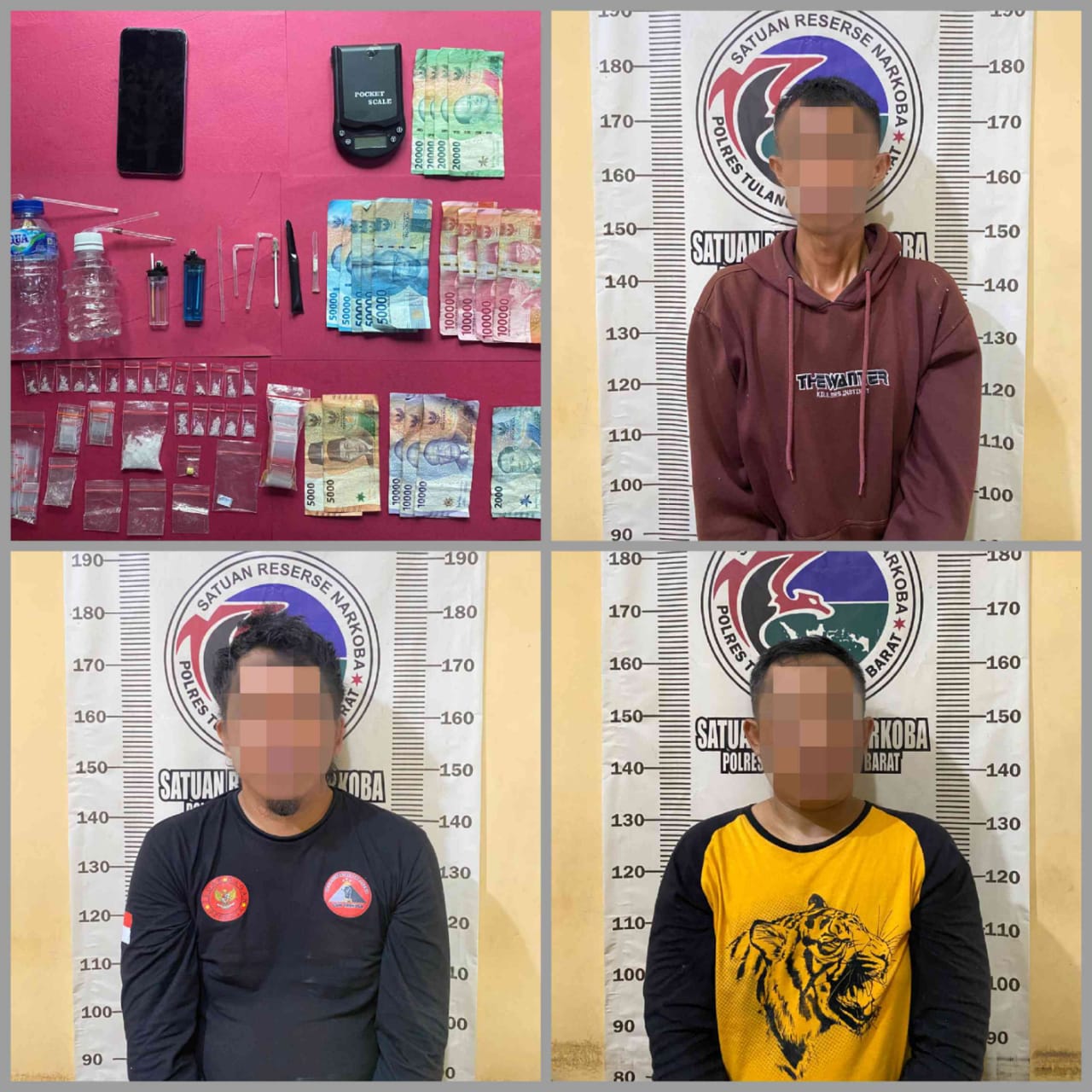Tulang Bawang Barat,sergap88.com–Satuan Reserse Narkoba (Satresnarkoba) Polres Tulang Bawang Barat Polda Lampung kembali berhasil mengungkap kasus tindak pidana penyalahgunaan dan peredaran gelap narkotika. Kali ini, Unit Opsnal Satresnarkoba mengamankan tiga orang laki-laki yang diduga terlibat dalam penyalahgunaan narkotika jenis sabu dan ekstasi.