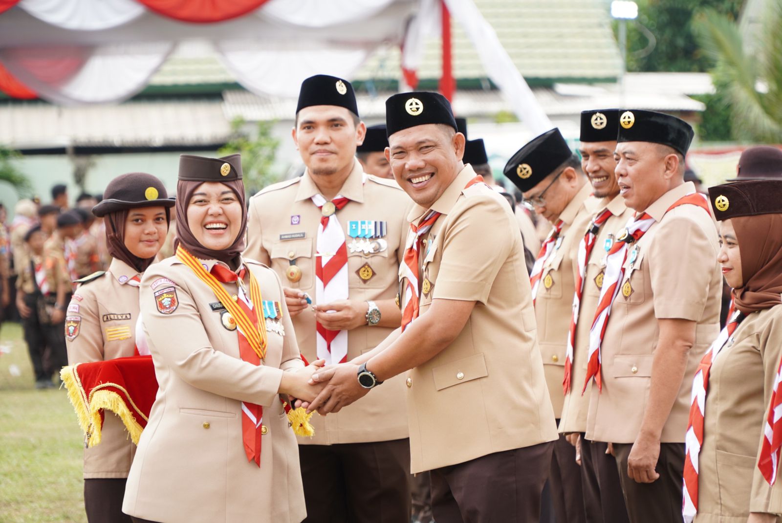 Wakil Bupati Tubaba Terima Lencana Pancawarsa III pada Apel Besar Hari Pramuka ke-64 Tingkat Provinsi Lampung